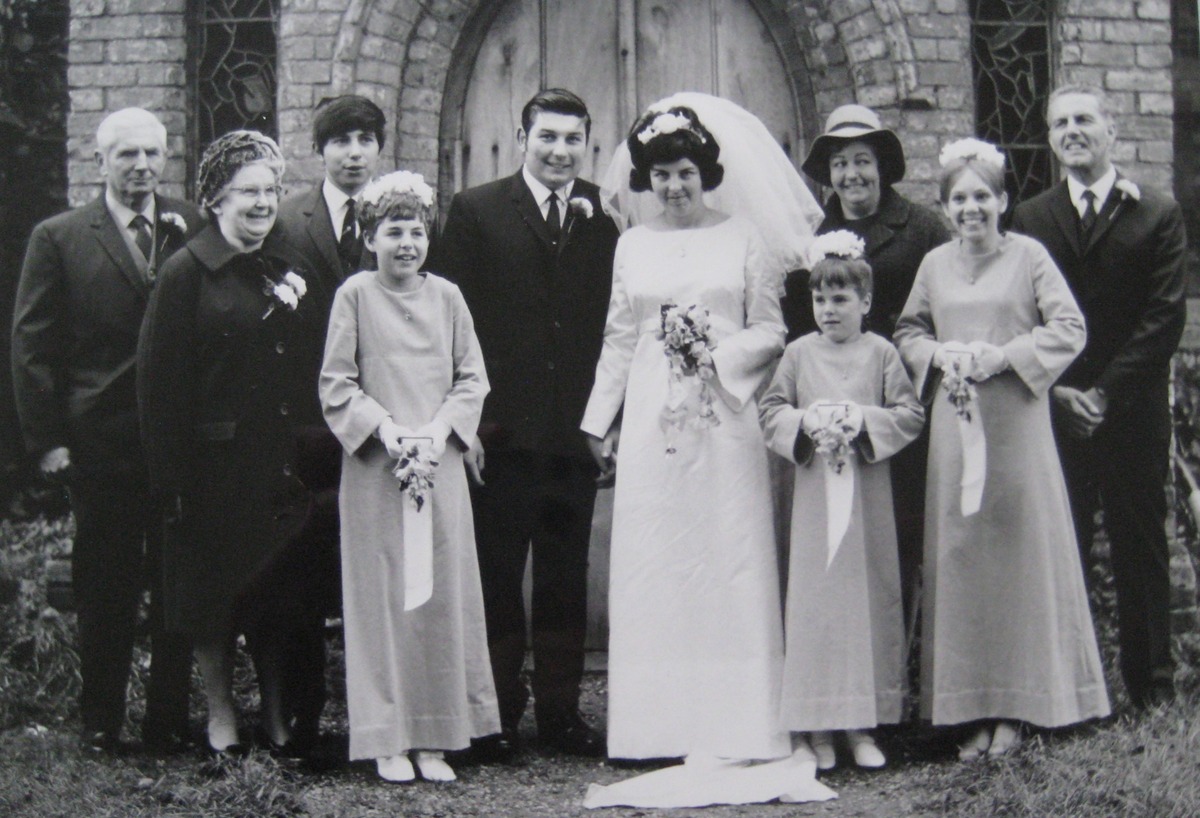 19681123 Maureen and Tony Dixey 23rd Nov 1968 with John Dixey, Connie Dixey, Bill Dixey, Beryl Raymond, Peter Raymond