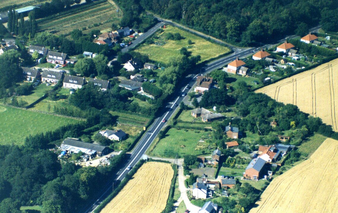 Note the old layout for the junction, recently redesigned in an attempt stop vehicles entering the no entry when heading to the Hedinghams.
