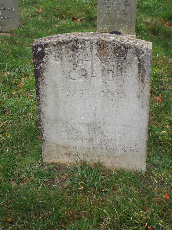 Craib, Ian                                                  2002                6/9              Ian Craib  1945 - 2002   Life is Immensely Precious and the Links We Have With other People in all Their Dreadful Complexity Are All That We have.
