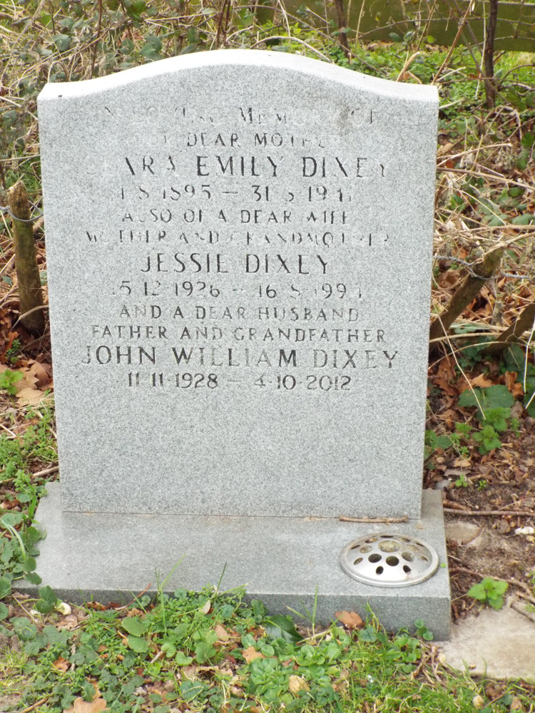 Dixey, Constance Violet                        24/09/2005              1/6                    Additional Inscription on stone slab  In loving memory of Constance Violet Mary Dixey Died 24.9.2005 Aged 98