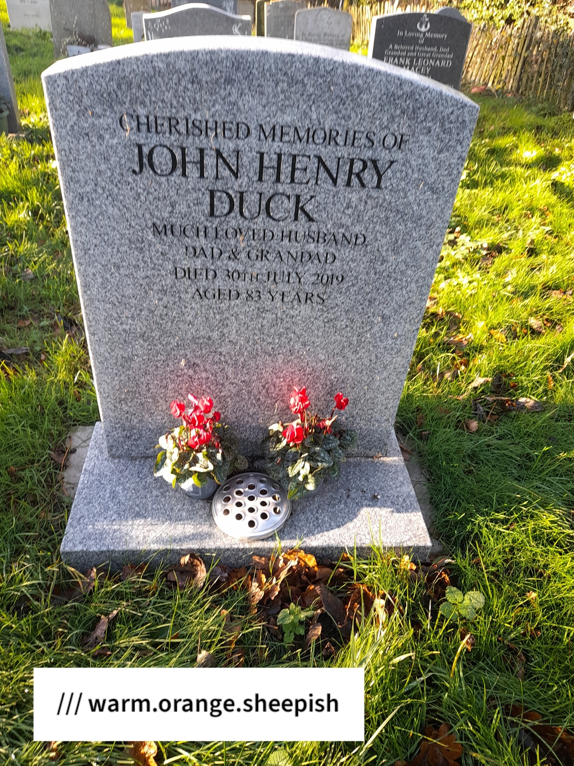 Cansell, Jack Donald                              02/04/1975         4/14               Inscription now includes "Also of a dearly loved wife and Mum Ruby Mary Cansell who died October 27th 1995 aged 71 years."