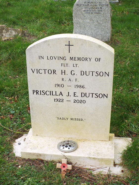 Dutson, Victor                                            1986                  5/5              In Loving memory of Flt Lt Victor H.G. Dutson RAF   1910 -1986