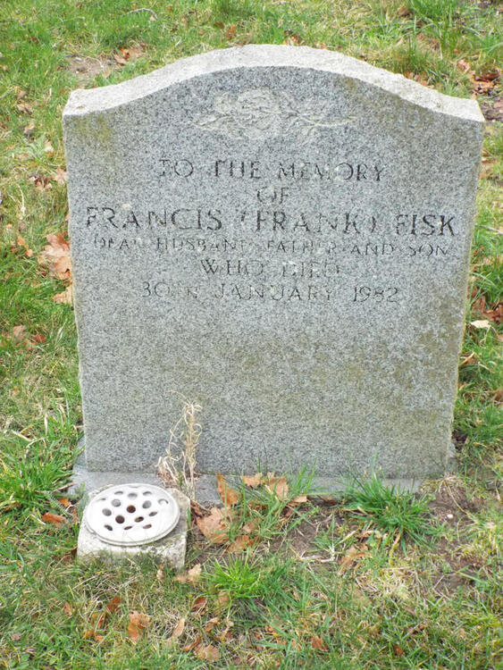 Fisk, Frances (Frank)                              30/01/1982              4/37                Not included in 1986 survey.  Headstone reads, "To the memory of Frances (Frank) Fisk  Dear husband, father and son who died 30th January 1982