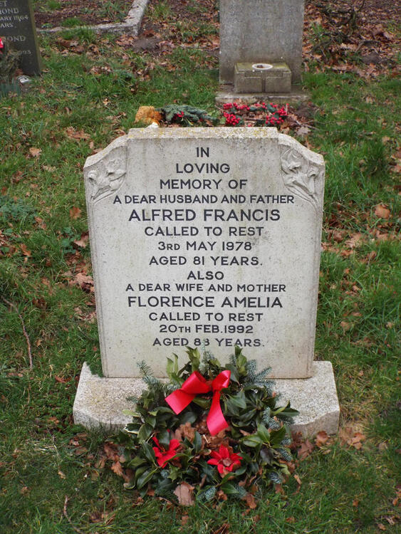Francis, Alfred                                        03/05/1978              4/28                     Inscription now includes "Also a dear wife and mother Florence Amelia. Called to rest  20th Feb 1992 aged 88 years."