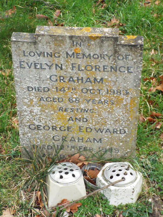 Graham, Evelyn Florence                          14/10/1983              4/42               Inscription Reads "In loving memory of Evelyn Florence Graham Died 14th October 1983 aged 66 years. Resting. George Edward Graham 12th Feb 1989  aged 78 years."