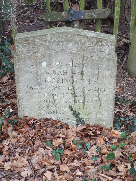 Harrington, Frederick Arthur                     06/12/1981              4/35              Not included in 1986 survey.  Headstone reads, "IN loving memory of a dear Mum and Dad, Frederick Arthur Harrington 13th September 1921 -6th Dec 1981 and Rose Harrington 3rd June 1918 -2nd April 1992.  Rest in Peace."