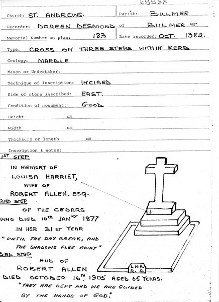 Allen, Louisa Harriet 10/01/1877 and Robert 16/10/1905 183 W3W