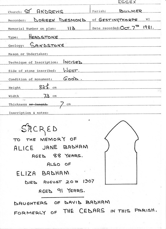 Badham, Alice Jane ?? and Eliza 20/08/1907 113 W3W
