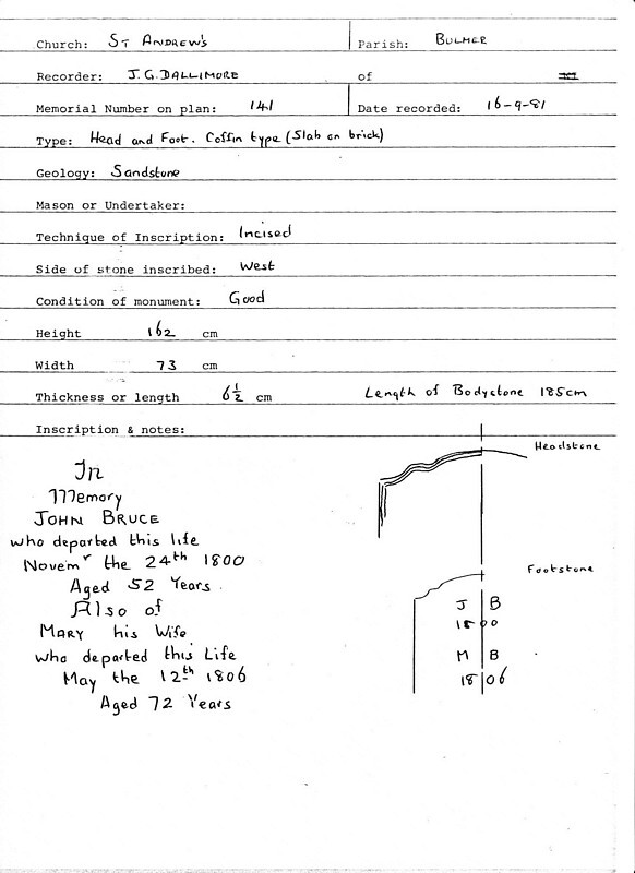 Bruce, John 24/11/1800 and Mary 12/05/1806 141 W3W