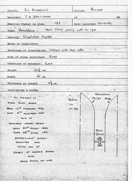 Burke, Anna Rosa 02/11/1865 and Rowland Henry 28/06/1861 193 W3W