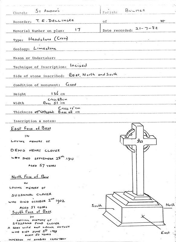 Clover, Denis 28/09/1910 and Clover, Susannal 02/10/1902 and Sussanna Pond 03/06/1899 17 W3W